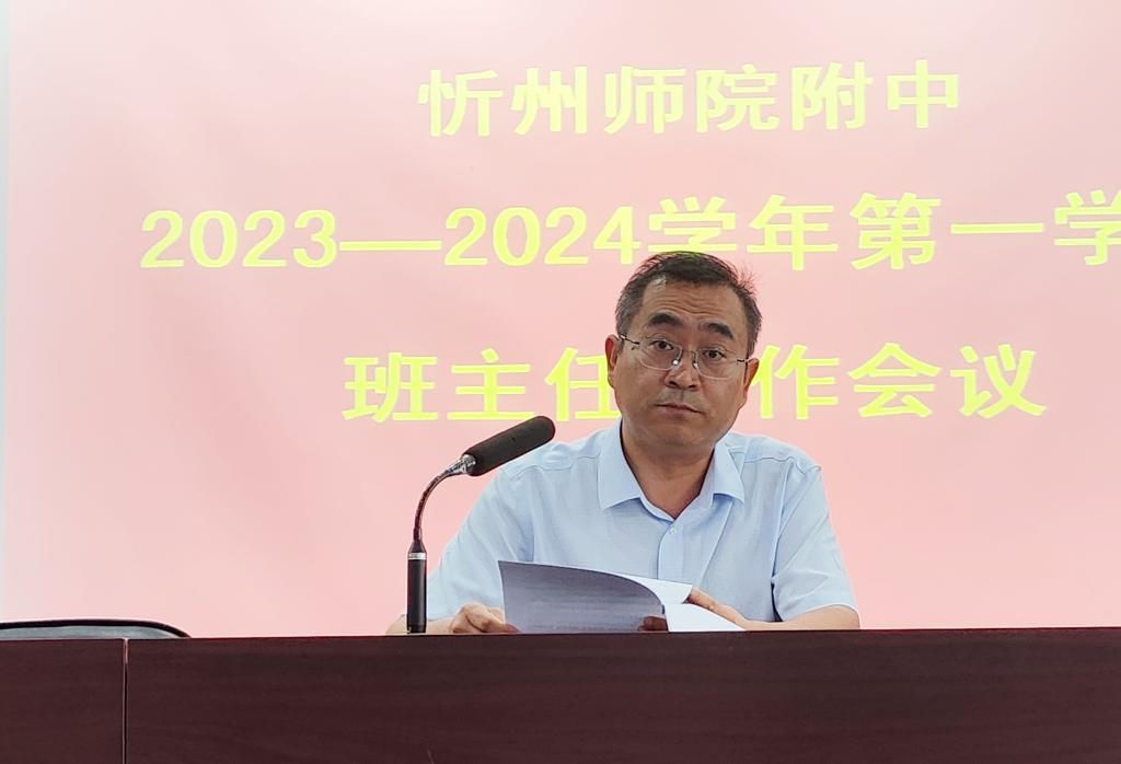 盛夏硕果盈枝,新秋聚力启航。为进一步加强班主任队伍建设,全面提高教育质量和育人艺术,切实提高班级管理效率,确保德育工作有序开展,9月14日下午,忻州师范学院附属外国语中学召开了新学期班主任工作会议。副校长(法人代表)宋云峰、政教处主任闫春云、各年级主任以及全体班主任参加会议。