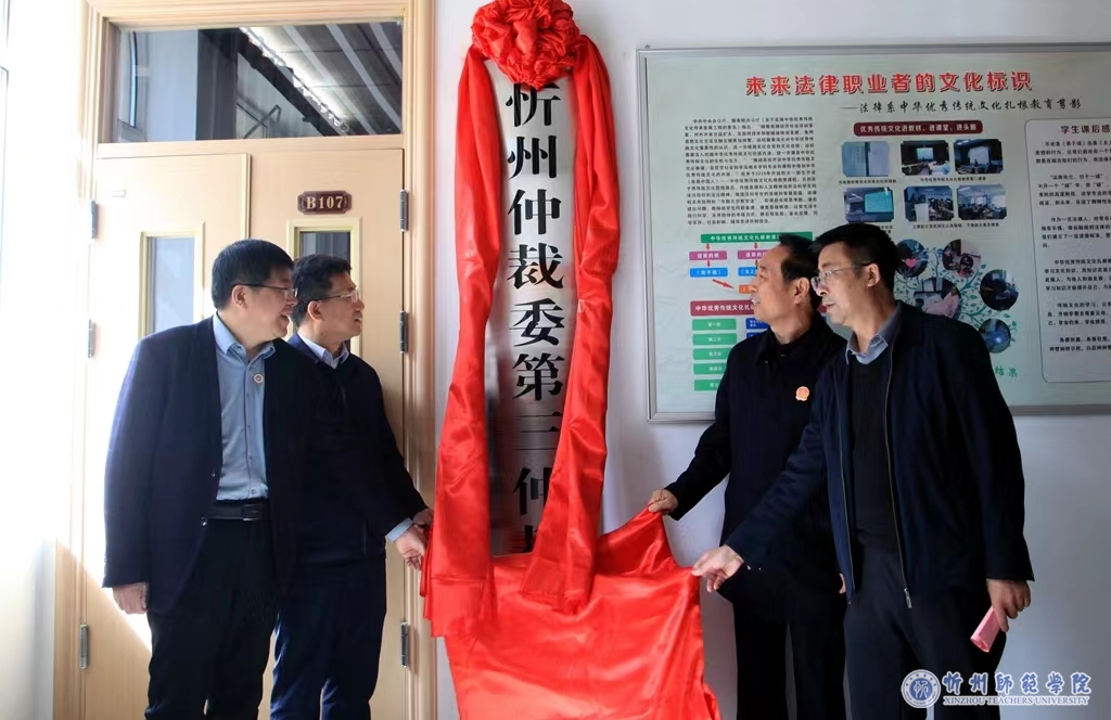 近日,我校与忻州仲裁委共建“仲裁庭审教学实践基地”签约暨“忻州仲裁委第三仲裁庭”挂牌仪式在法律系模拟法庭举行。我校副校长侯铁虎与忻州仲裁委专职副主任任福田、忻州市司法局副局长郭锐出席。法律系师生代表参加。