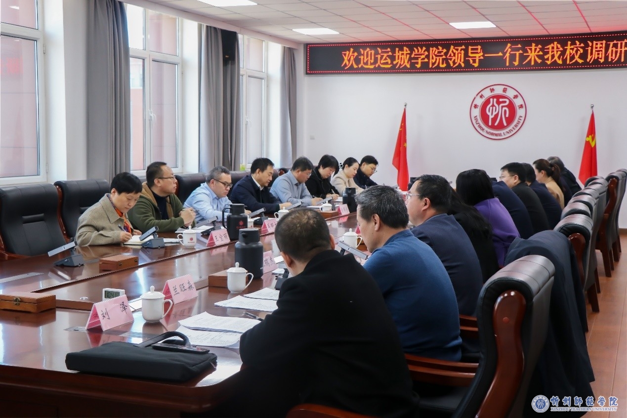李新代表学校对黄解宇一行的到来表示欢迎,感谢运城学院长期以来给予我校改革发展的关心和支持,并简要介绍了我校校情和重点工作情况。他说,近年来,忻州师范学院持续深化对新时代高等教育发展的规律性认识,以“2263”工作目标为牵引,认真落实教育强国建设规划纲要,坚定不移走好高质量发展之路,朝着高水平应用型师范大学奋斗目标阔步前进。我校与运城学院合作基础良好、潜力巨大,双方倾力支持对方发展,为校校合作树立了典范。运城学院在山西高等教育格局中战略位置重要、实力雄厚,希望一如既往地关心支持我们发展,进一步深化两校在基础研究、学科建设、协同创新、文化传承发展、思想政治教育、人才培养等方面的战略合作,共同推动高等教育内涵式发展、助力教育强省建设,携手为全省高质量发展和现代化建设贡献高校力量。